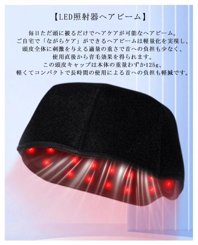 | 【赤色LEDによる】頭皮に赤色LEDを照射することで、毛を促すことができます強力な浸透、髪の豊かさと強さを再現します。 【LED照射器ヘアビーム】毎日ただ頭に被るだけでヘアケアが可能なヘアビーム。ご自宅で「ながらケア」ができるヘアビームは軽量化を実現し、頭皮全体に刺激を与える適量の重さで首への負担も少なく、使用直後から育毛効果を得られます。この頭皮キャップは本体の重量わずか125g、軽くてコンパクトで長時間の使用による首への負担も軽減です。 【使用簡単・男女兼用】頭皮ケアしながら、頭皮環境を整えます。発毛装置として、本発毛ヘルメットは冠るだけ、利用できます。タイマー機能付きの安心設計で、毎回20分間使用すると自動的に停止します。 | |