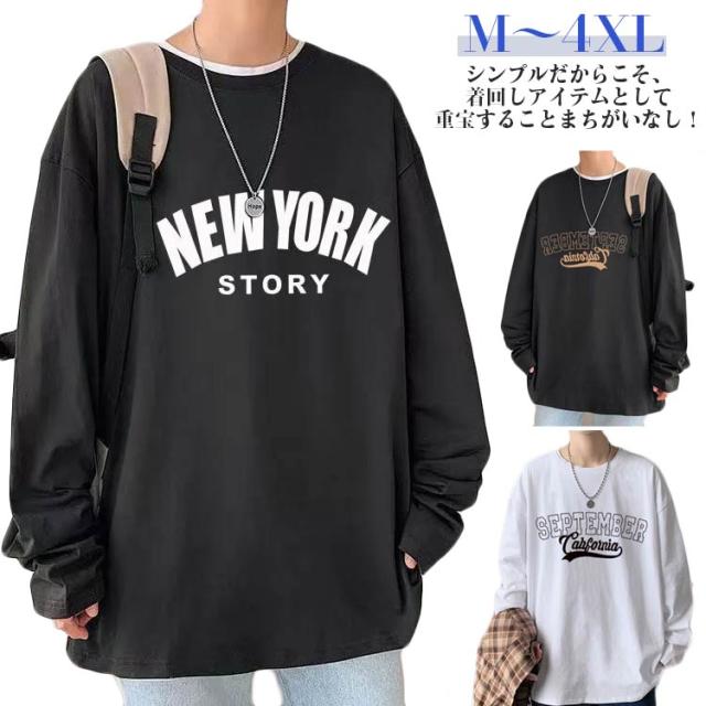 長袖Tシャツ カジュアル Tシャツ メンズ ロンT tシャツ 重ね着 クルーネック ティーシャツ ルームウェア ロングTシャツ おしゃれ ロンT トップス おしゃれ トレーナー 薄手 春 春服 秋 秋服 ゆったり 体型カバー 送料無料