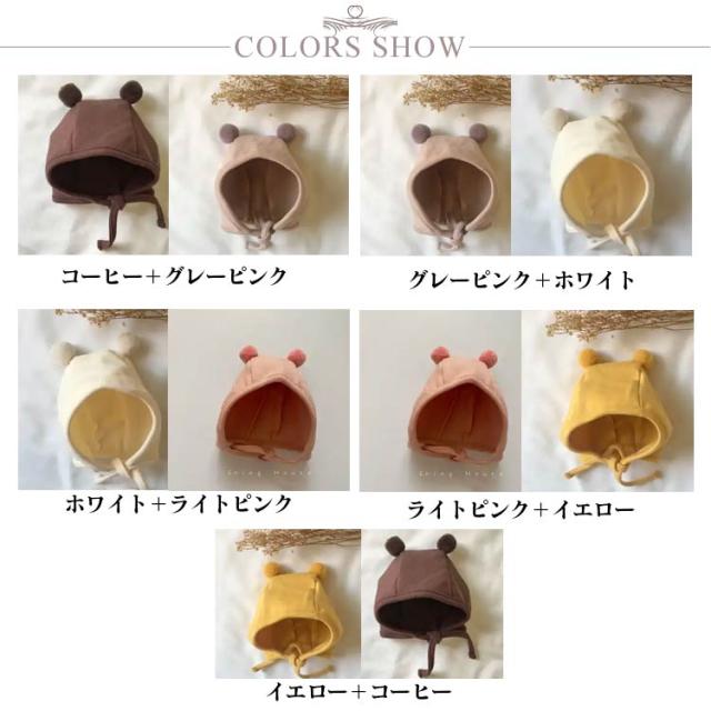 可愛い くま耳帽子 結べる ベビー 調節可能 帽子 くま耳帽子 男の子 ベビー帽子 赤ちゃん 春秋 綿混 防風 かわいい 冬 2点セット 耳付き 写真撮影 女の子 子供 マンスリーフォト 記念写真 くま耳 撮影衣装 家族写真 お出かけ