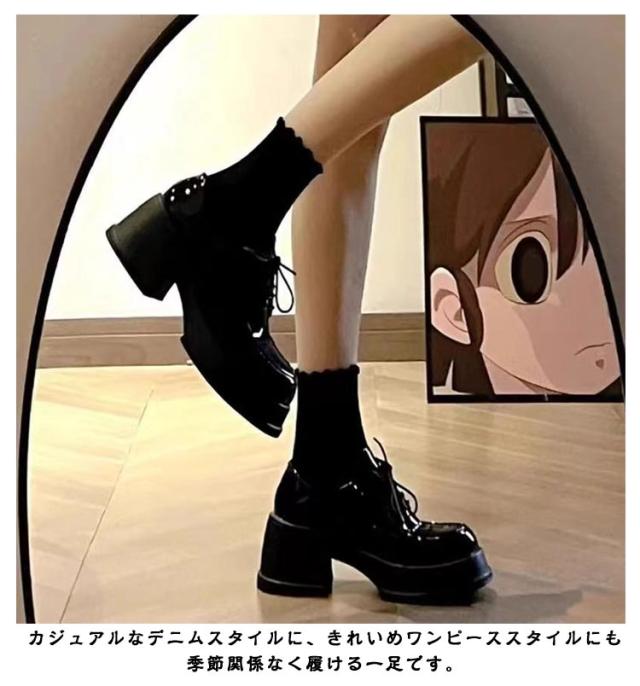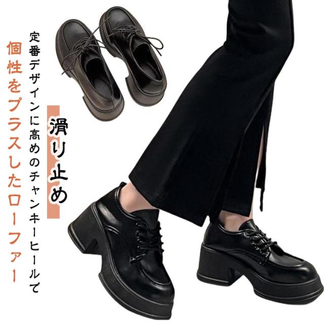 レディース チャンキーヒール 厚底ローファー 厚底 靴 ヒール マット 美脚 光沢 大人 スクエアトゥ 痛くない きれいめ 学生 厚底ローファー エナメル 歩きやすい 通勤 身長アップ スクール コスプレ 女性 シンプル おしゃれ 可愛い 履きやすい 滑り止め ブラック