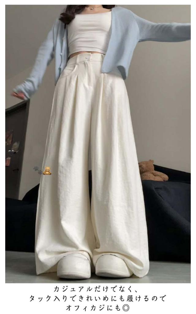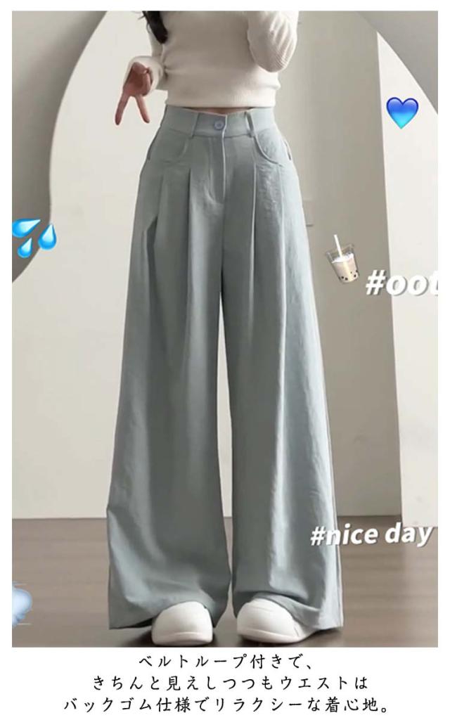 ワイドパンツ タックワイドパンツ 薄手 スラックス 無地 レディース ロングパンツ ハイウエスト きれいめ ズボン ストレート バックゴム タックパンツ ウエストゴム 夏 美脚 脚長 パンツ 低身長 普通丈 高身長