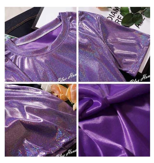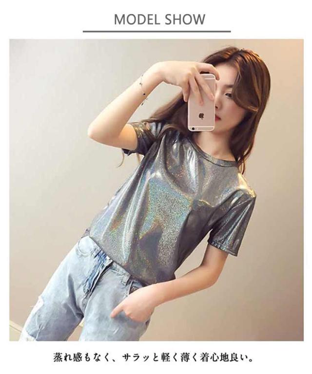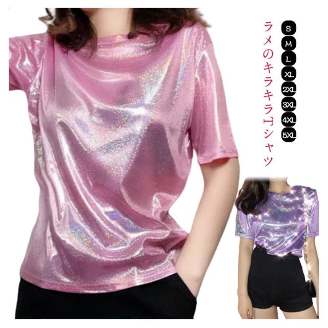 | ラメのキラキラTシャツ 蒸れ感もなく、サラッと軽く薄く着心地良い。 普段使いにはもちろん、ダンス・ステージ衣装にもピッタリ! ショートパンツやホットパンツなどと合わせやすい。 メリハリのあるシルエットが女性らしさを醸し出す一着。 普段使いにはもちろん、ダンスの衣装やイベントにもオススメです♪インスタ映えします♪ ストレッチ性のあるつるつるとした素材。やや透け感があり薄手なので、サラッと軽く着心地◎ 光の当たりかたで多色に見えます。 | |