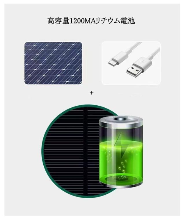 | サイズについての説明 | ※実寸はメジャー採寸の為、若干の誤差が生じる場合があります。 【フリーサイズ】:54-59cm調整可能【つば幅】:約10.5cm【バッテリー容量】:1200mAh【充電方式】:ソーラー充電 & USB充電(Type-C)1.ソーラーファンは直射日光下でも回転可能 (太陽光のない場合は無回転)2.バッテリーはフル充電で8-16時間使用可能で、 風速は3段階で調整でき、風向きは上下に調整可能。【連続使用時間】:SUNの段階で約8-16時間連続使用(USB充電)【充電時間】:約3時間、過充電保護機能あり、充電時はレッドライト点灯、充電完了時はブルーライト点灯。【ソーラー発電機能についてファンの使用上の注意】:ソーラーパネルでファンを直接駆動、太陽エネルギーについて: 屋外で日当たりの良い場所であること扇風機がソーラーパネルを直接使用。日陰、曇りや雨の日は使用不可。前もってギアポジションを左側にダイヤルしておく。 <お勧めポイント> ●多機能設計 ソーラー+USBファンキャップは日よけ機能とともに、日焼け防止や長寿命のバッテリーを特徴としています。屋外での使用時には欠かせないアイテムであり、太陽エネルギーとUSB充電の双方からエネルギーを供給し、持続可能な涼しさを提供します。 ●快適な着用感 持ち運びに便利なソフトな生地を使用しており、軽量でありながらも耐久性があります。長時間の使用でも快適な着用感を実現し、アウトドアやレジャーでの活動に最適です。 ●走行中も落ないゴムバンド ゴムバンドは帽子を調整できて小さな頭にも優しく、 落下防止バンドで風が吹いても落ちないダブルの効果 ●フリー回転機能 ファンキャップはフリー回転機能を備えており、360度自由に風向きを調整できます。これにより、どんな位置でも自然な風を感じることができ、涼しさを保ちながら快適に活動できます。 ●長寿命バッテリー 高性能のバッテリーが内蔵されており、長時間使用しても安定した風速を提供します。ソーラーパネルからの充電も可能であり、エネルギーの効率的な管理が可能です。 ●充電ダブル保証ファンキャップ 耐久性と省エネのアップグレードされた太陽光発電パネル 内蔵高容量1200MAリチウム電池、 アップグレードされた過充電保護 ●ファン取り外し可能 取り外し可能なファンでお手入れ簡単 ●広いつばの |