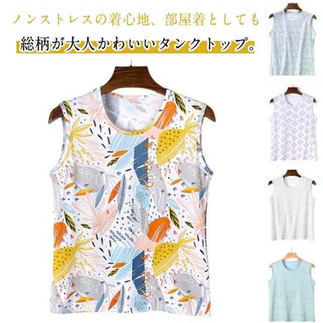 レディース タンクトップ ミセス コットン レディース 花柄 柔らかい 総柄 シニア ノースリーブ 部屋着 インナー 女性 婦人 春夏 トップス タンクトップ 蒸れない 大きいサイズ 袖なしトップス ルームウエア 通気性