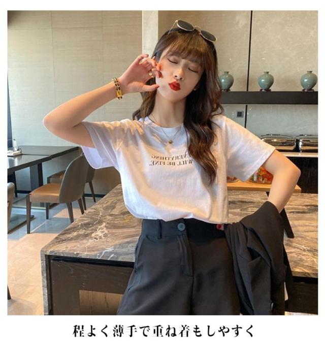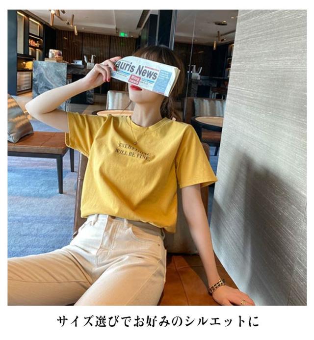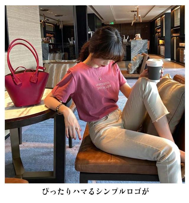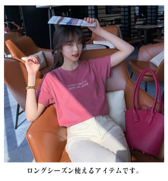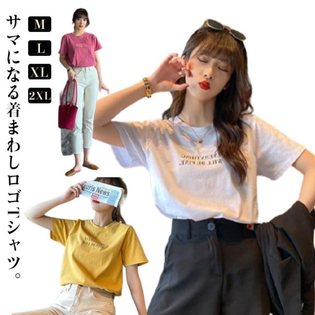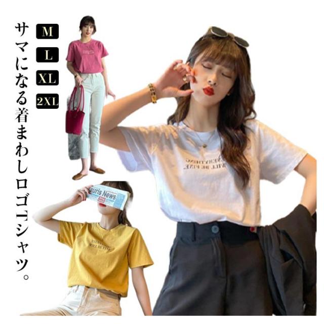 レディース カジュアル ストレッチ Tシャツ ミドル丈 春夏 カットソー ノーブラ tシャツ おしゃれ ロゴT プリント Tシャツ ワンポイント ラウンドネック 薄手 普段着 カラフル 半袖 デイリー 着まわし 通勤 通学 アウトドア