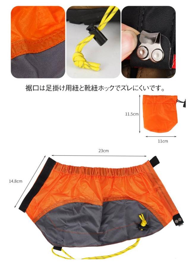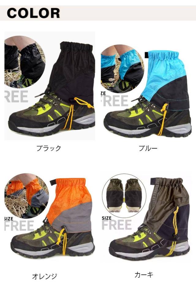 撥水 トレッキング 耐久 ショート丈ゲイター 全4色 雪 雨よけ 登山 ゲーター 簡単着脱 泥はね ゲイター ショート丈ゲイター 砂よけ 透湿 砂利 泥よけ 靴カバー マジックテープ スノー対策 ブラック ブルー オレンジ