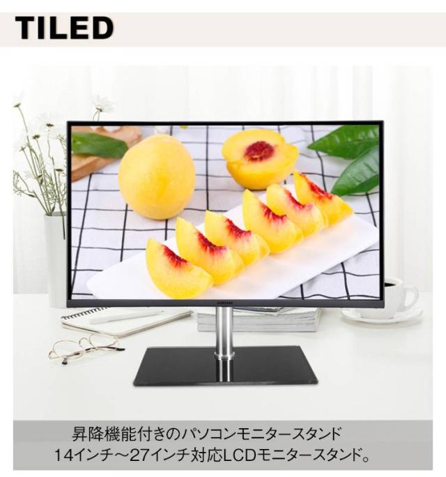 | 液晶モニタースタンド 昇降・首振り・360度回転 強化ガラス台座 ネジ付き 昇降機能付きのパソコンモニタースタンド 14インチ〜27インチ対応LCDモニタースタンド。 台座部分に強化ガラスを採用。 シンプルながらスタイリッシュなデザイン!14インチ〜27インチ対応 卓上 LCDモニタースタンド。 左右は360度、高さは無段階、角度は-5度〜+15度で調節ができるため、ご使用頂くシーンに合わせて適切な目線でモニターをご覧頂けます。 VESA規格100×100、75×75、50×50に対応し、耐荷重20kgまでのモニターに対応しているため、様々なモニターにお取り付け可能。 【取付方法は3ステップ】 ストレス無くモニターをお取り付け頂けます。 1.ブラケットをモニター裏側に取り付ける。 2.アームにブラケットを取り付ける。 3.ネジを締めて完成。 | |