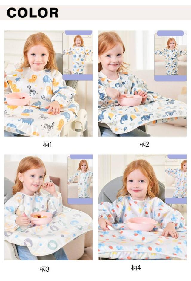 エプロン よだれかけ お食事 ベビーエプロン お食事エプロン 一体型 ロング 防水 長袖 エプロン 食べこぼし 袖付き お食事エプロン 長袖 テーブルクロス一体型 吸盤食器対応 お食事 離乳食 お食事エプロン 女の子 男の子 キッズ 赤ちゃん