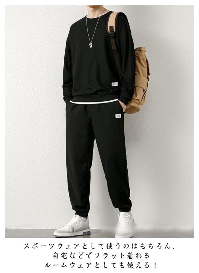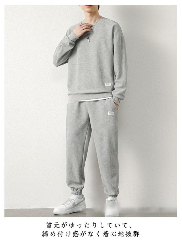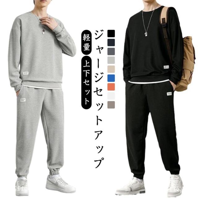 部屋着 夏 ジャージ 上下セット 2点 スウェット トレーナー 2点 上下 長パン 長袖ジャージ 長袖セットアップ 軽量 ロングパンツ メンズ ルームウェア パジャマ Tシャツ スウェットパンツ セットアップ 大きいサイズ ジャージ ゆったり ワップル
