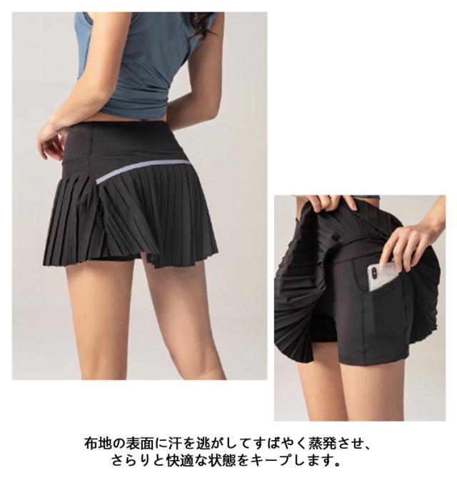| 通気性と速乾性の生地は、柔らかく繊細な感じ、快適な運動を与えます。 布地の表面に汗を逃がしてすばやく蒸発させ、さらりと快適な状態をキープします。 インナーパンツと一体型のデザインでパンチラされる心配がない、アクティブな動作でも安心です。 サイドにポケットが付いていてスマホなど簡単収納ができるので、とても便利です。 シンプルで飽きのこないデザインなので、トップスとのコ ディネ トがしやすいです。 可愛く機能性のあるウェアで気分を高めて運動したい!という方にも是非オススメです♪ フィットネスウェア、トレーニングウェア、ランニングウェア、テニスウェア、ゴルフ、ダンス服、ヨガウェア、ジム、体操などいろいろなスポーツをするできます。そして、通学、出勤、気軽なデートなど場合に役立ちます。 | |