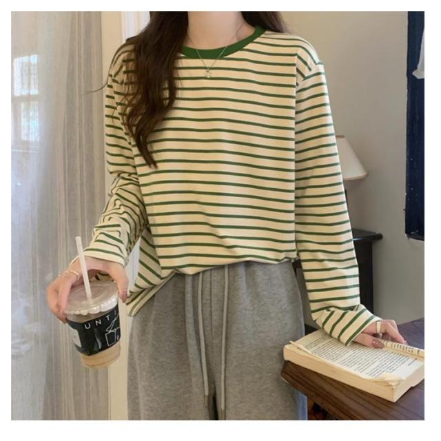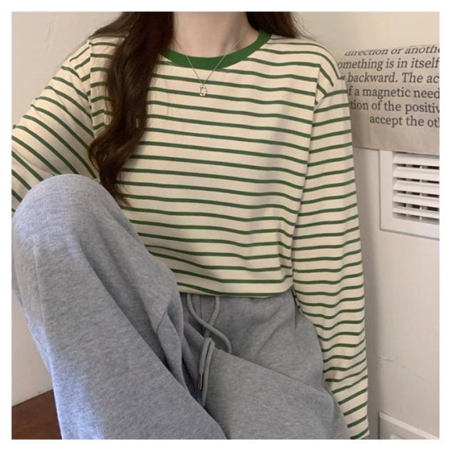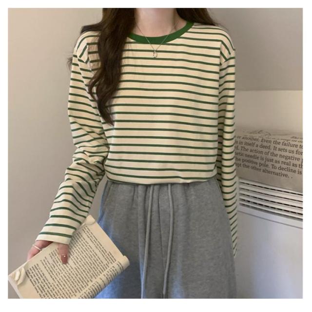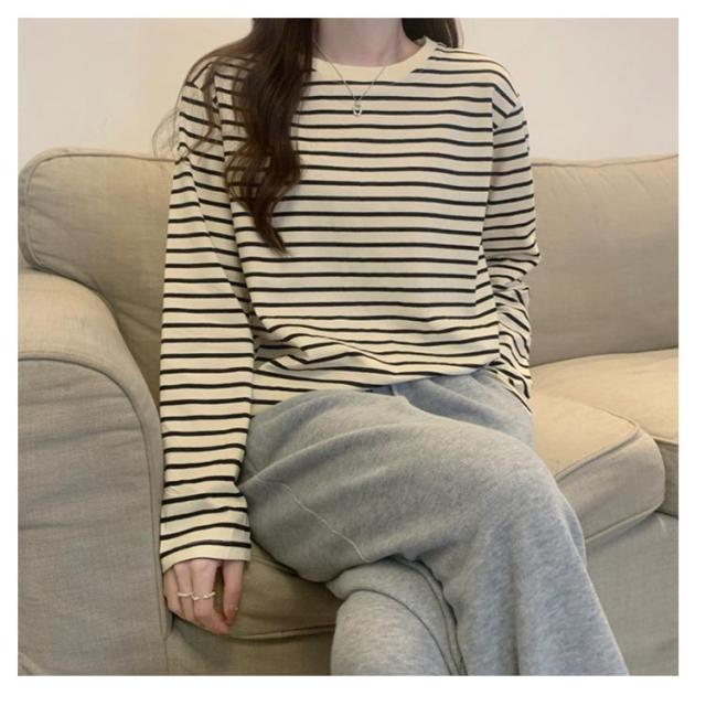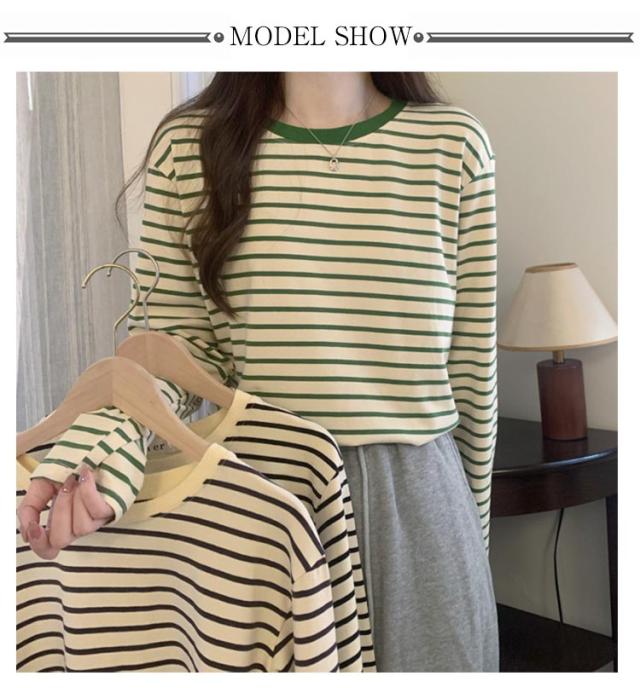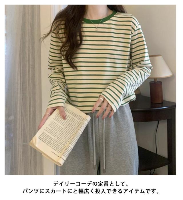 | 細ボーダーデザインがかわいいトップス! パイピングディテールがゆるっとしたリラックス感を演出してくれます。 1枚でも重ね着でも合わせやすく着回し力抜群! 形もゆったりめで動きやすいのでリピ買いしたくなること間違いなし♪ デイリーコーデの定番として、パンツにスカートにと幅広く投入できるアイテムです。 | |