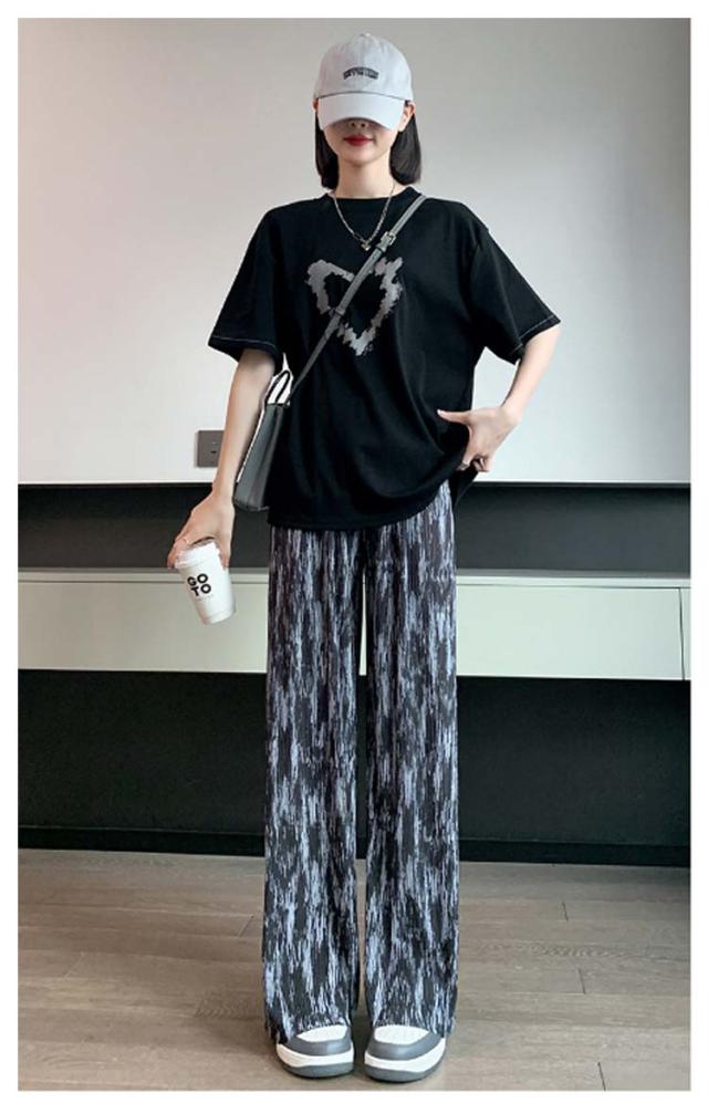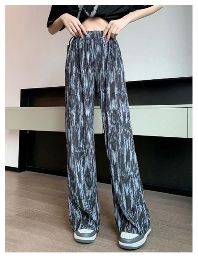 春 夏 薄手 プリーツパンツ レディース ヒョウ柄 ワイドパンツ 秋 タイダイ柄 ストレート ワイドパンツ 着痩せ ハイウエスト カジュアル ロングパンツ 長ズボン ボトムス イージーパンツ 大きいサイズ