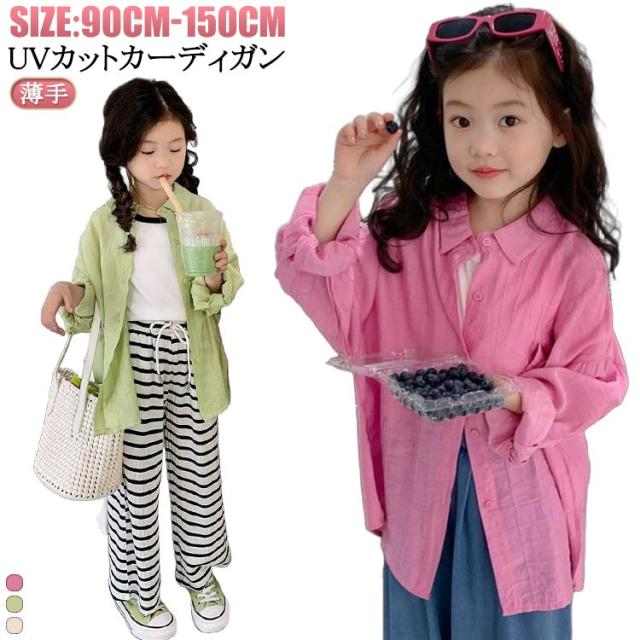 ジャケット UVカット 薄手 女の子 子供服 キッズ 長袖 サマーカーディガン 日焼け防止服 UVカーディガン UVカット 防蚊 羽織り ベビー 前開き 子供 キッズ ジュニア 子ども 冷房対策 紫外線対策ベージュ グリーン ピンク