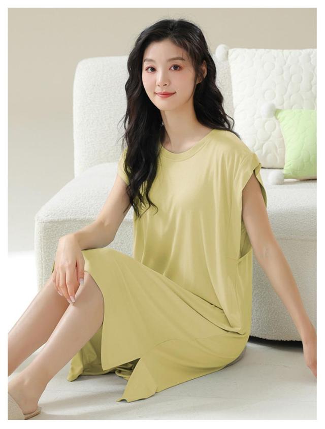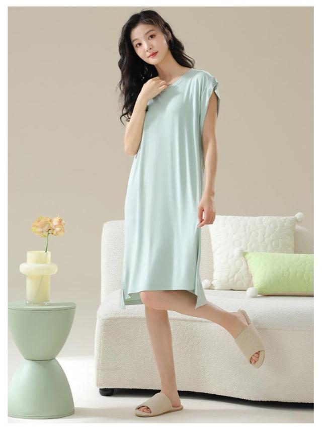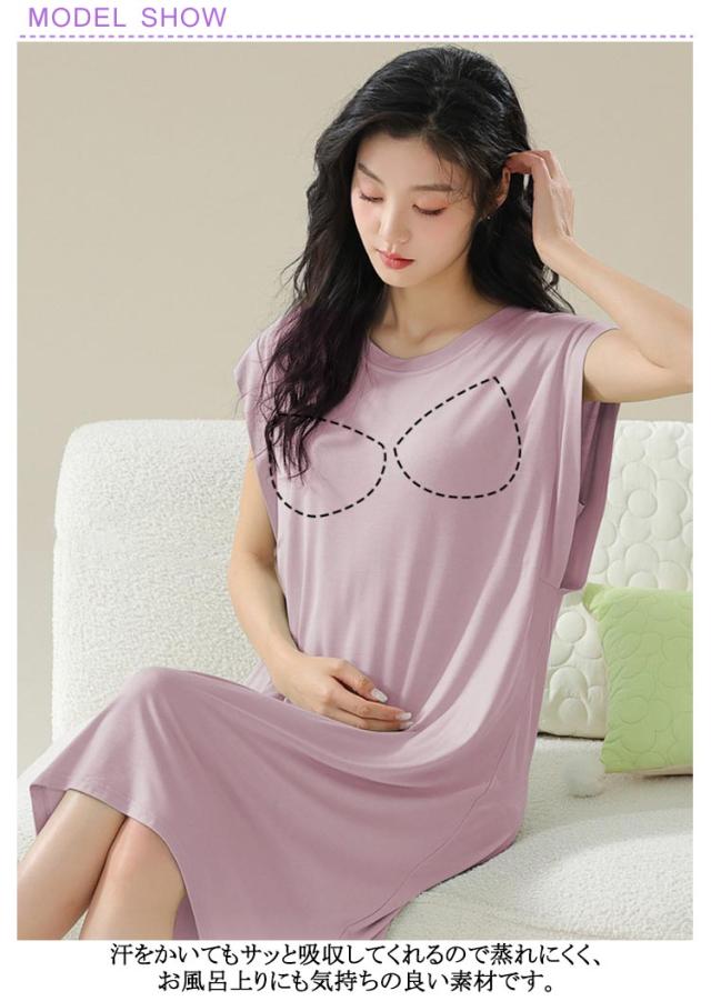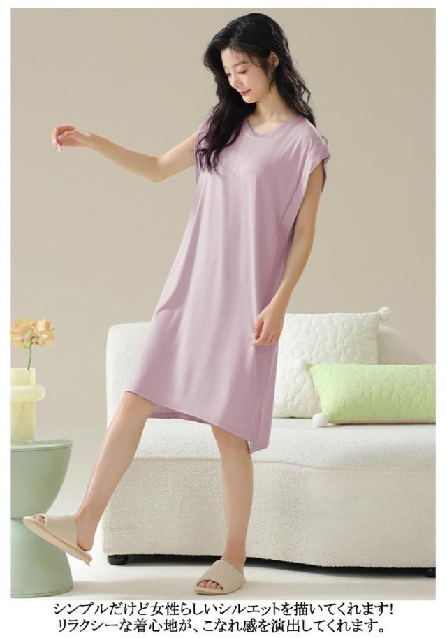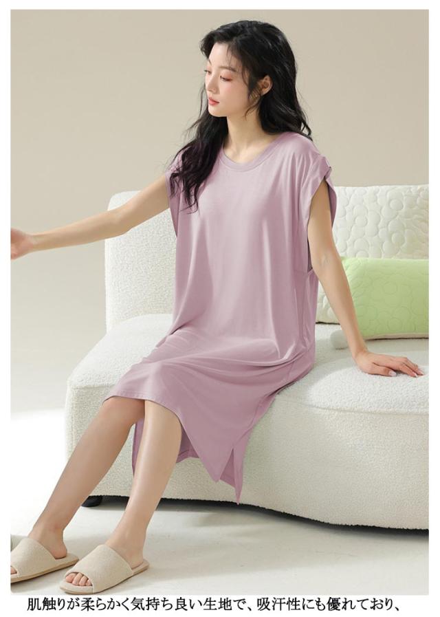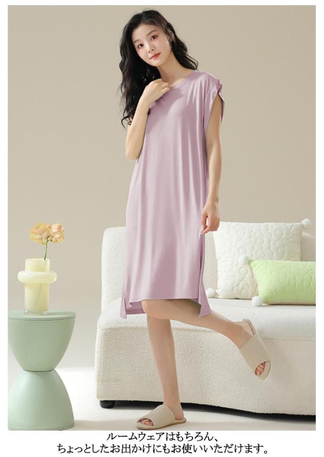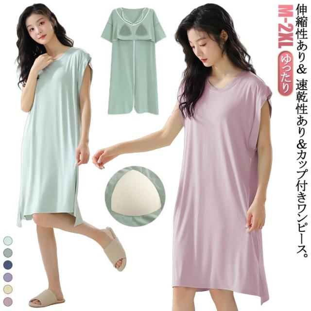 ロングワンピ ロングTシャツワンピース 袖なし ゆったり カップ付き モダール フレンチスリーブ ルームウェア ワンピース パジャマ 部屋着 ナイトウェア カップ付き リラックス カップ付きワンピース