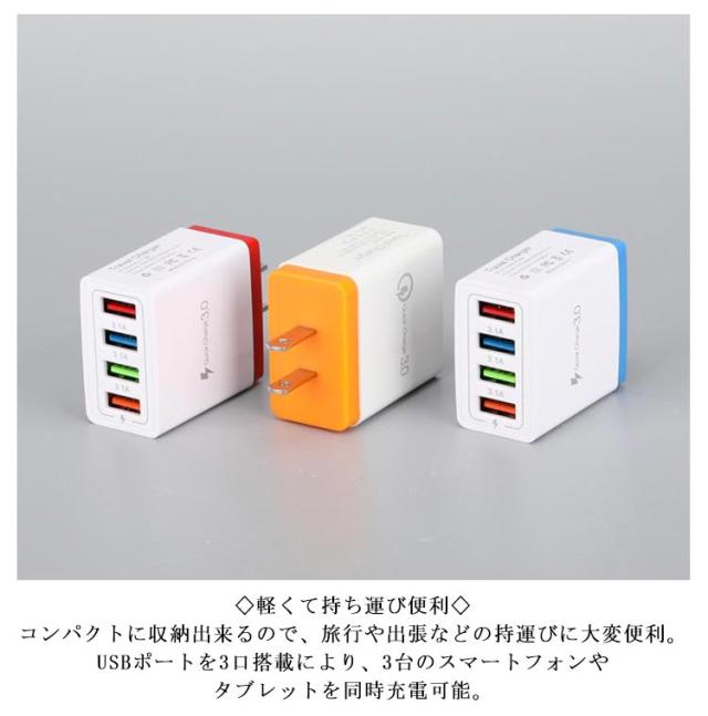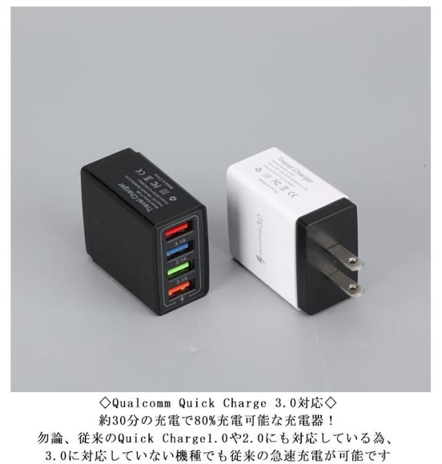 Type-A 2個セット クイックチャージ3.0 4ポート コンセント 12w ACアダプター 高速充電 iPhone iPad Android qc3.0 急速充電器 ACアダプター Charge 3.0 ACアダプタ Quick スマホ 携帯電話 携帯 同時充電