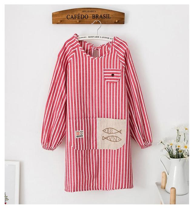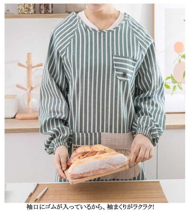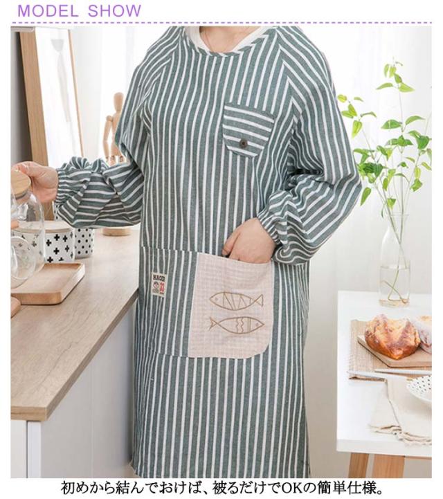 送料無料 送料無料 かっぽう着 かわいい スモック 割烹着 レディース エプロン おしゃれ ストライプ 保育士 介護士 母の日 プレゼント 給食