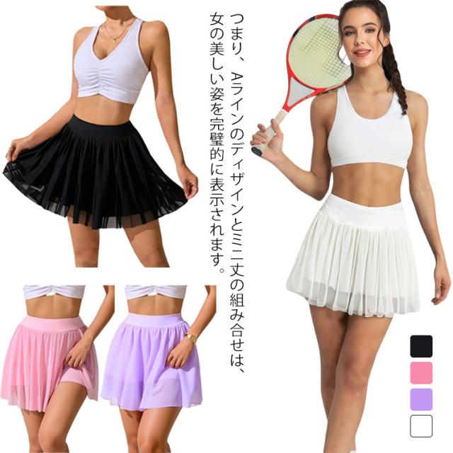 レディース ゴルフスカート スカート ヨガウェア インナーパンツ付き トレーニング フィットネス ミニスカート チアダンス ランニング 卓球 チア ジム ゴルフスカート スコート チアリーダー バドミントン ダンス衣装 体操服 応援団 美脚