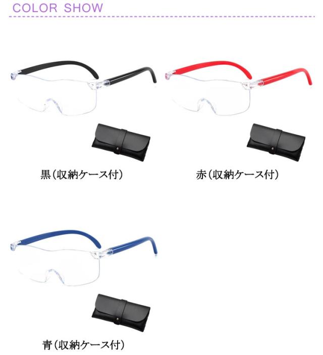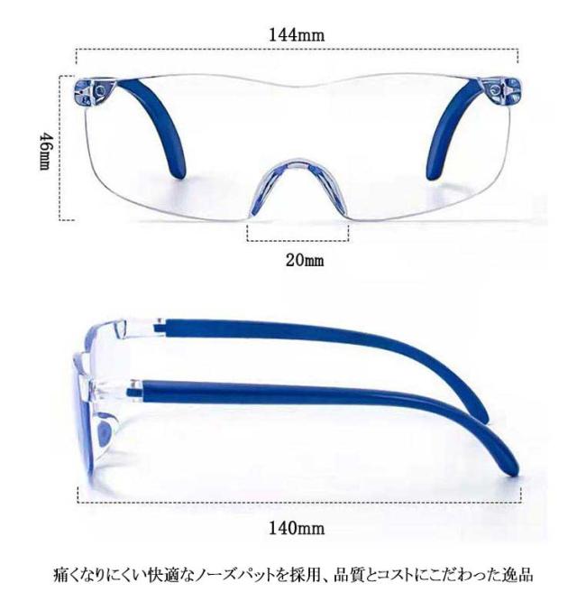 | 収納ポーチ付 眼鏡の上からそのままかけられる軽くクリアな視界で快適の眼鏡ルーペ 痛くなりにくい快適なノーズパットを採用、品質とコストにこだわった逸品 | |