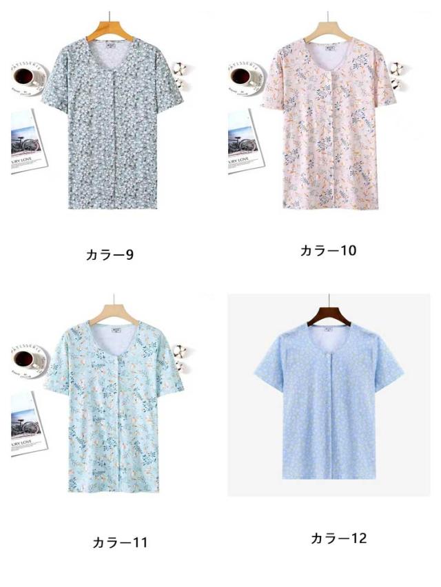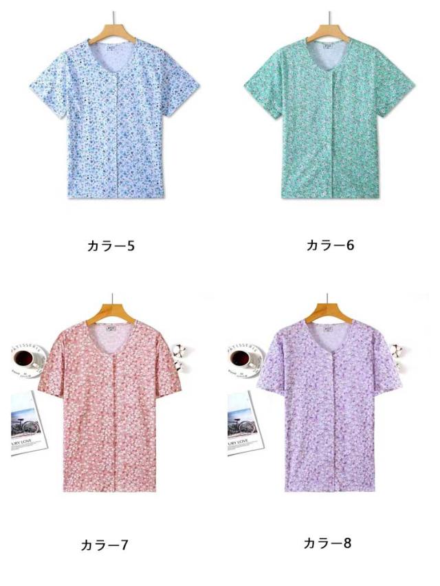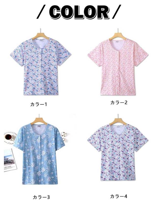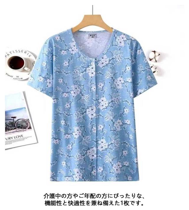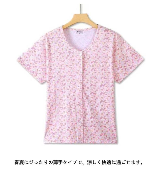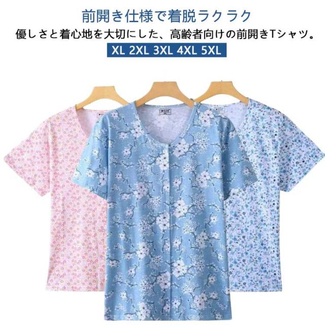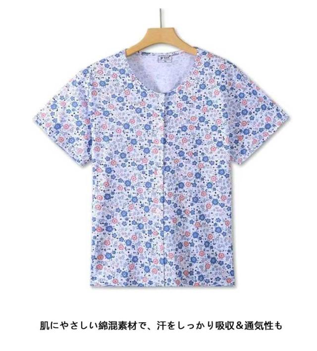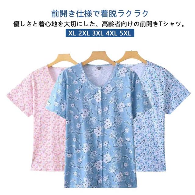 ラウンドネック 大きいサイズ Tシャツ 介護服 クルーネック 前開き 前開き レディース インナーシャツ トップス 介護用 前開き 長袖 ルームウェア 下着 肌着 花柄 吸汗通気 入院 手術 高齢者 部屋着 ゆったり 春夏秋