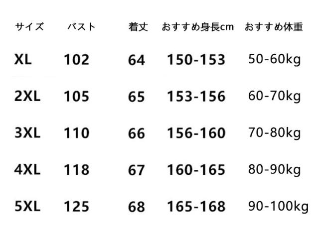 | サイズ | XL 2XL 3XL 4XL 5XL |