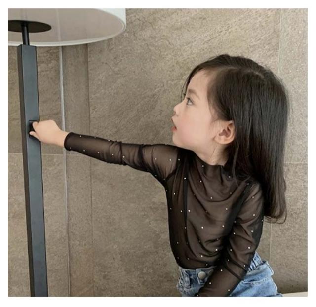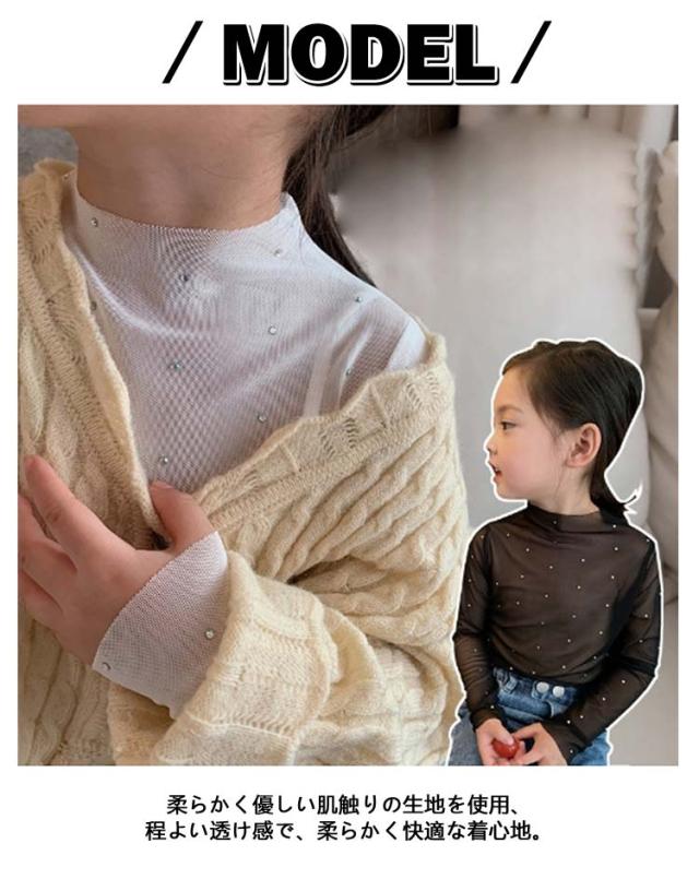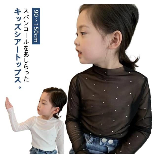 シースルー ラッシュガード キッズ服 ハイネック インナー 女の子 Tシャツ レース付き 90 日焼け対策 子供服 花柄 薄手 長袖 ベビー服 透け感 スパンコール 長袖 レイヤード風 可愛い シアートップス 100 110 120 130 140 150cm
