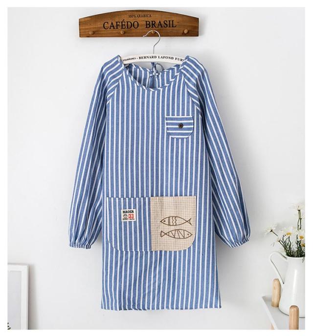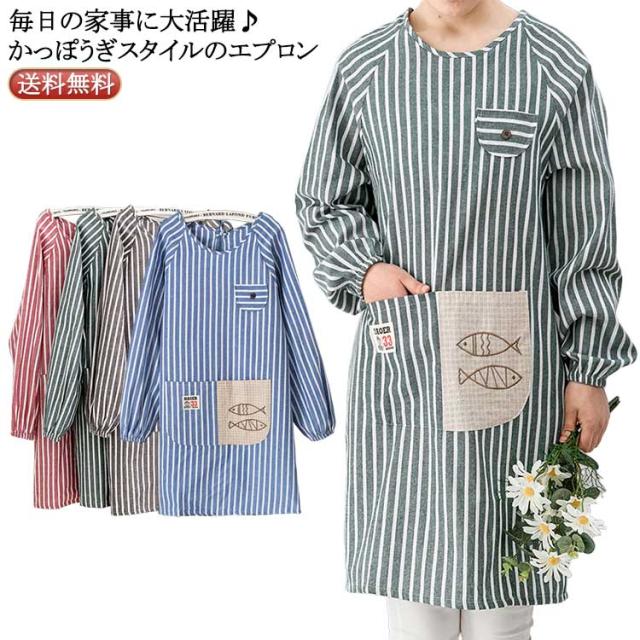 かわいい 割烹着 送料無料 ロング 保育士 おしゃれ レディース エプロン スモック ストライプ かっぽう着 送料無料 母の日 プレゼント 給食