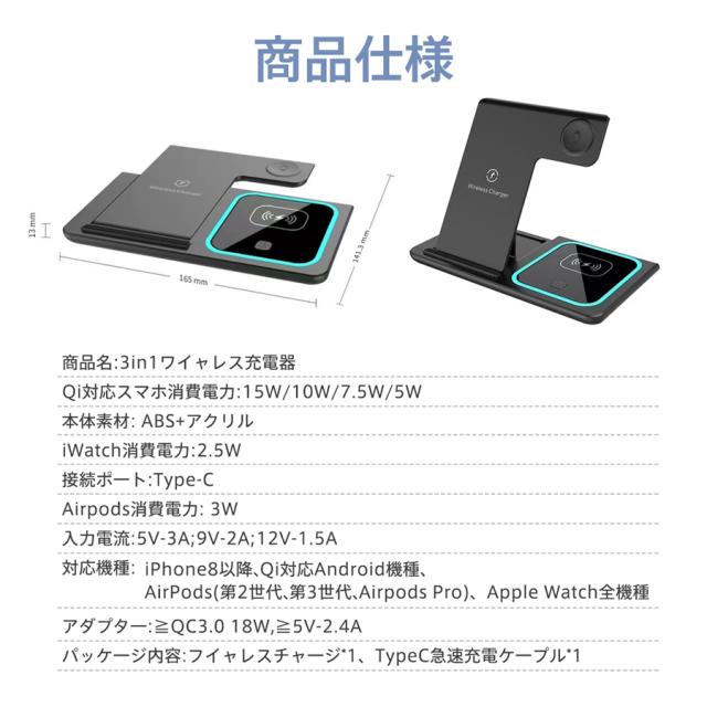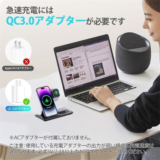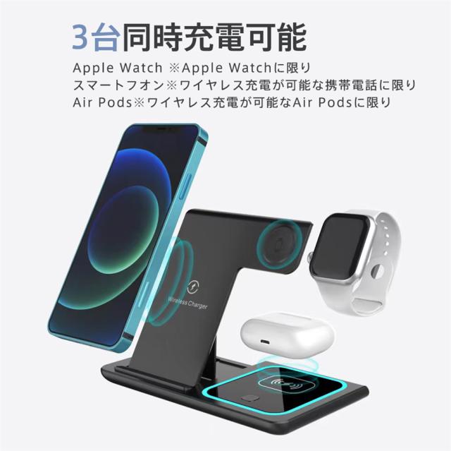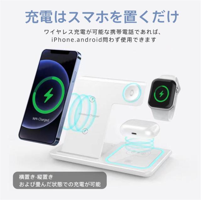 ★検索キーワード:Andriod apple watch iPhone 15 14 13 12 11 充電器 3台対応 充電スタンド Qi急速充電 置くだけ 同時充電 15W 3in1 スマホ おしゃれ 高速充電 コンパクト 縦置き 横置き 充電スタンド スタンド式 ワイヤレスチャージャー スタンド スマホ se pro max Qi対応 ワイヤレス Type-C給電 卓上 qi急速 持ち運び 折りたたみ アンドロイド