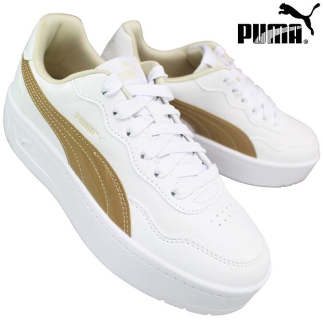 プーマ PUMA 厚底スニーカー 405077-01 コートラリースカイメタル ホワイト/ゴールド 23cm〜24.5cm レディース ローカットスニーカー ダッドスニーカー シューズ 運動靴 紐靴 プーマ405077
