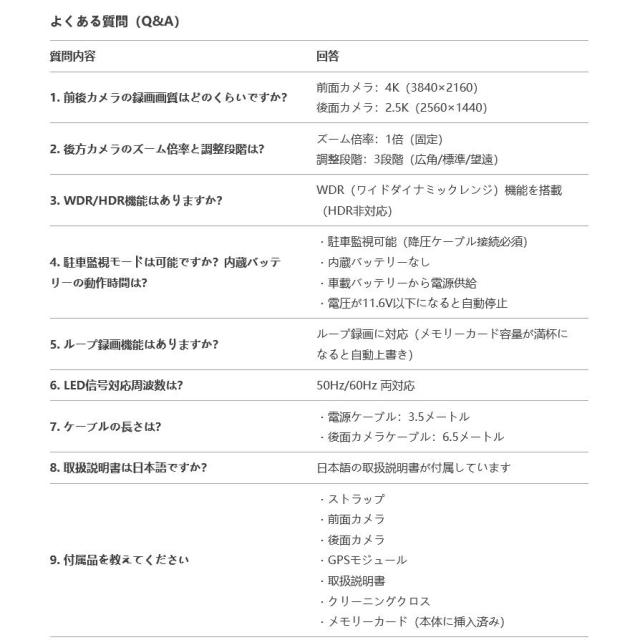 バージョン/ フロントカメラ4K+リアカメラ2.5K