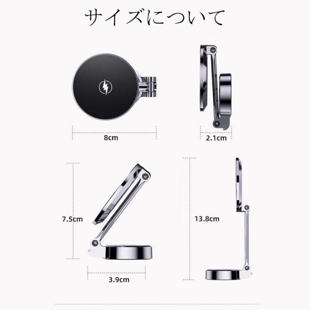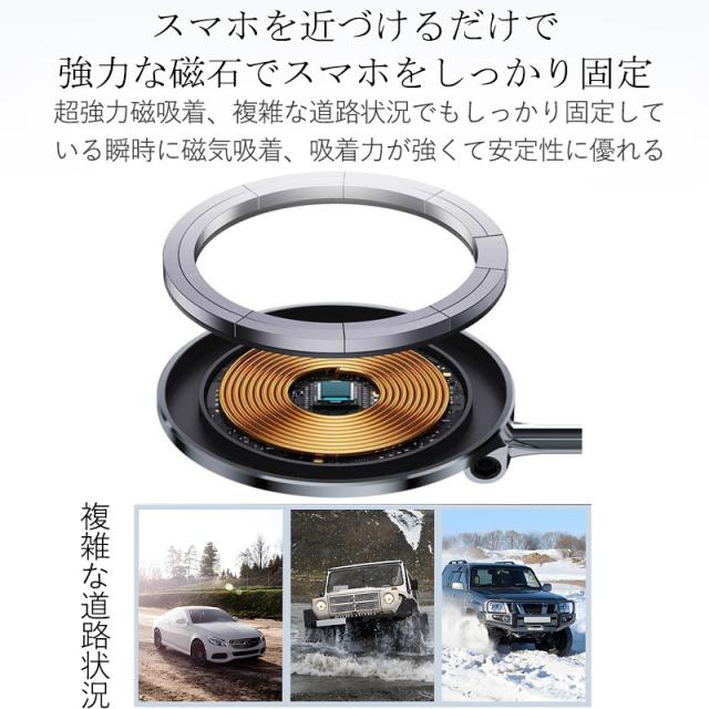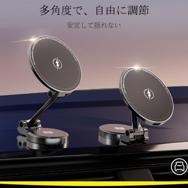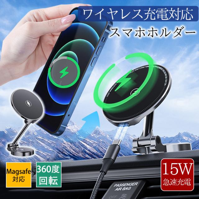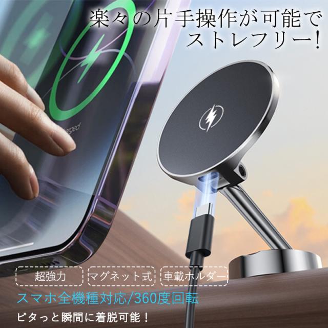 スマホホルダー 車 車載 車載ホルダー ワイヤレス充電対応 magsafe スマホスタンド マグネット 360°回転 両面吸着 全