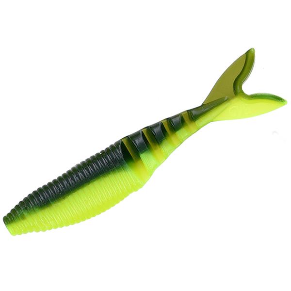 ●シャッド形状のフォルム、アコーディオン状のカッティング、フランジ付のテールから生み出されるその動きはブレーデッドジグのアクションを相殺することなくナチュラルな泳ぎを披露します。
