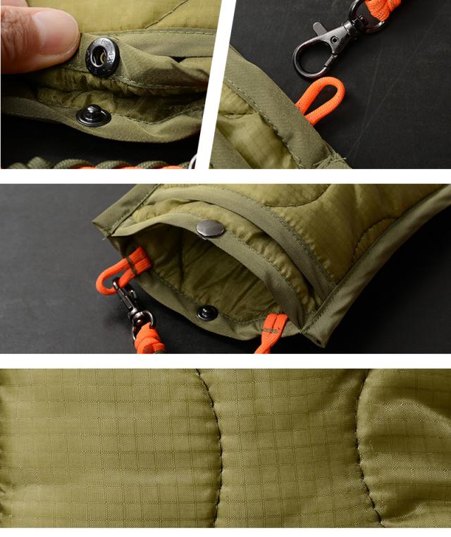 貴重なデッドストックのM-65ライナーをリメイクしたWAIPER.incオリジナルのサコッシュタイプのユーティリティーポーチが登場。素材にオニオンキルティングが特徴的な実物 新品 米軍 M-65ライナーを解体して使用。軽くて柔らかな質感のナイロンと、クッション性のある中綿がスマホなどの小物も優しく保護してくれます。フロントにポケット一つ、メインスペースはスナップボタンで簡単に開閉可能。フラットでシンプルな造りに、キルティングライナー素材ならではのボリューミーなルックスが加わった新鮮なデザイン。ショルダーストラップのリフレクター(反射素材)が織り込まれたパラシュートコードの鮮やかなカラーも魅力です。
