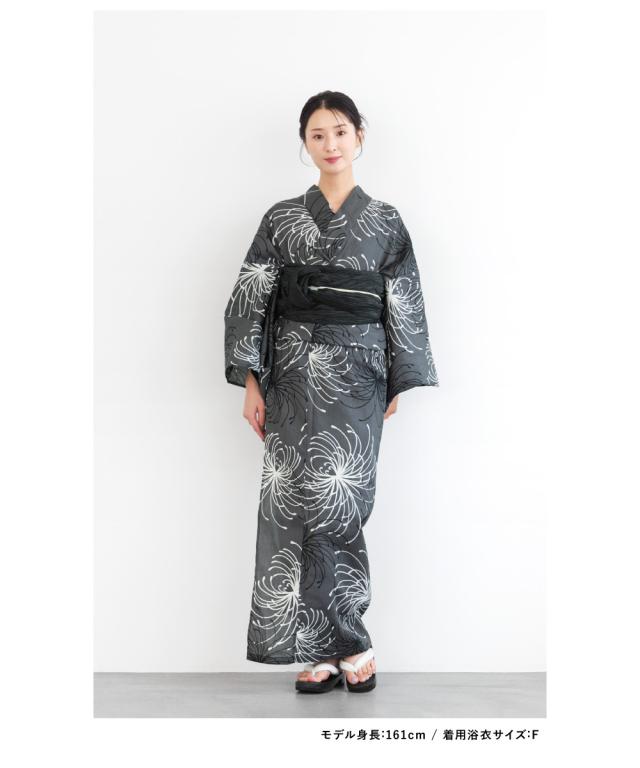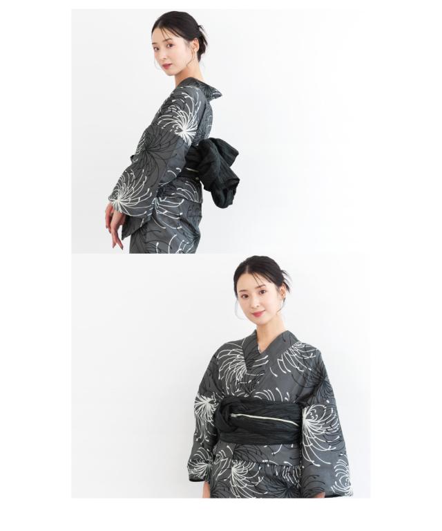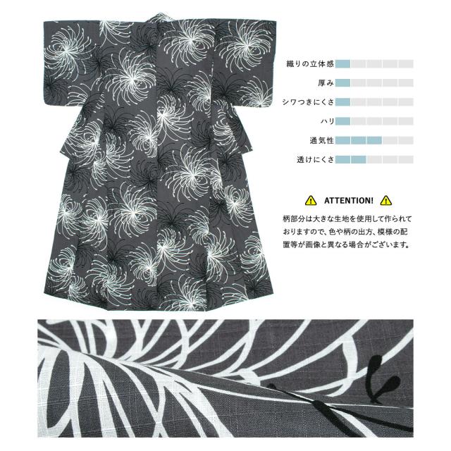 浴衣 濃グレー地に乱菊
