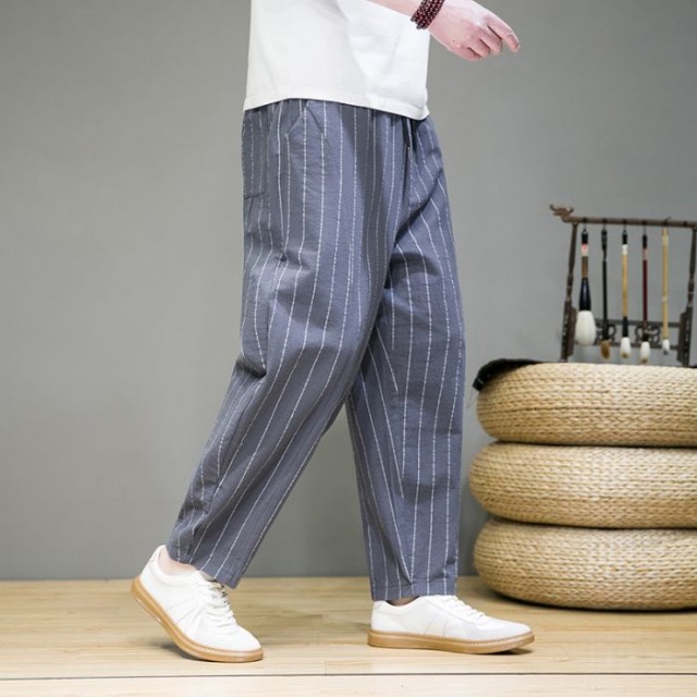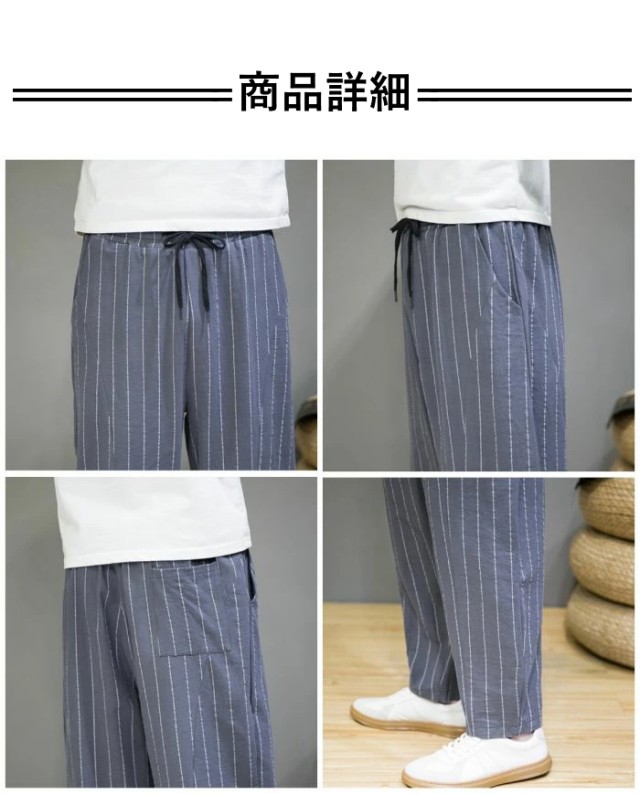 サルエルパンツ メンズ 大きいサイズ ワイドパンツ パンツ リネンパンツ ワークパンツ ボトムス ストライプ 夏新作