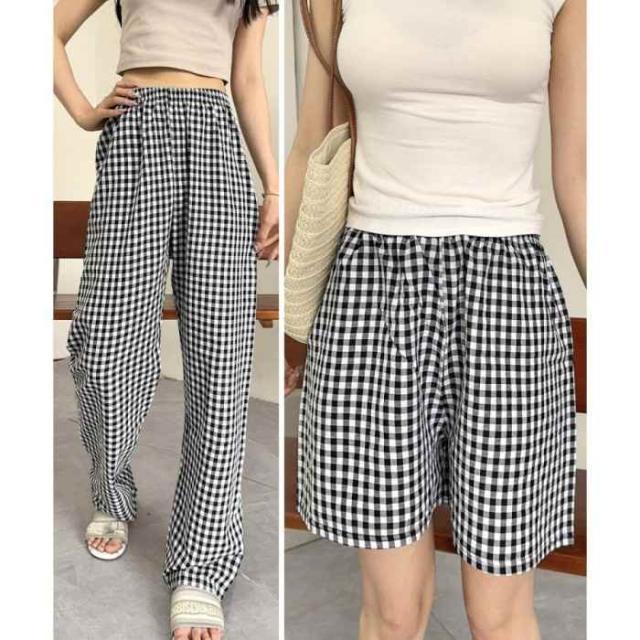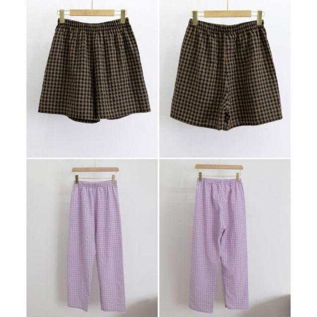 夏にぴったりな軽やかチェック柄パンツ、ショートとロングの2タイプから選べる。