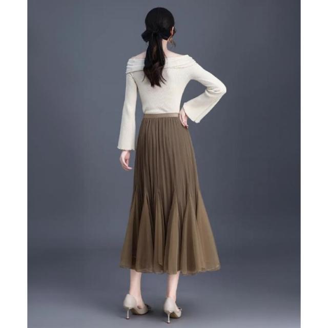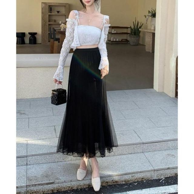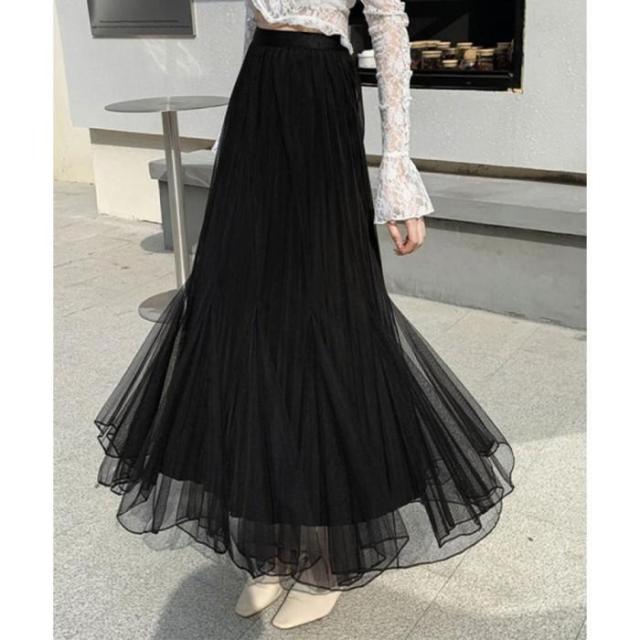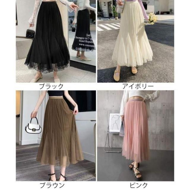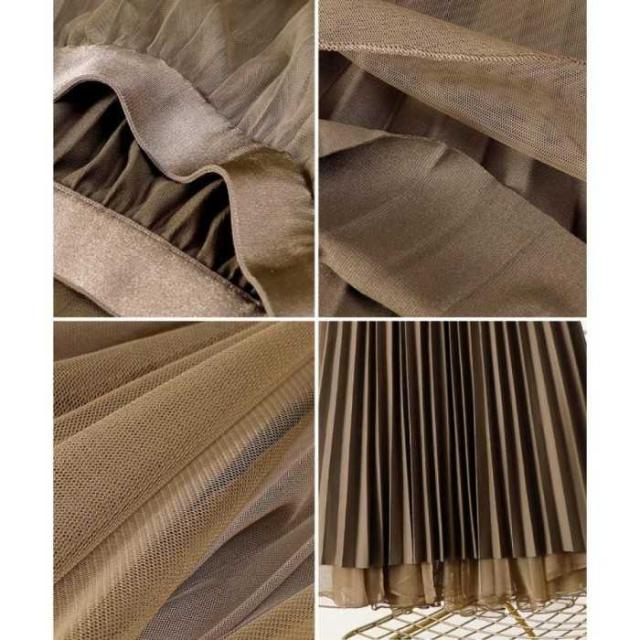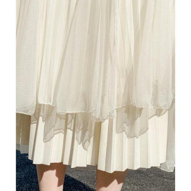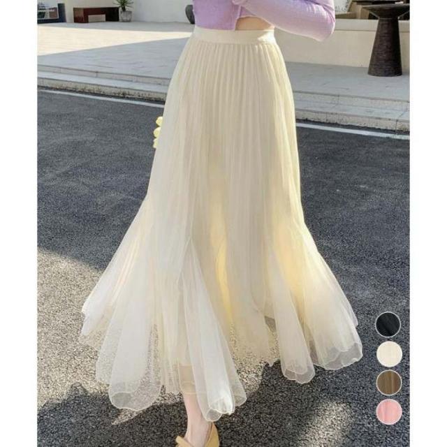 表側は軽やかなチュール、裏側はきれいめなプリーツ仕立て。