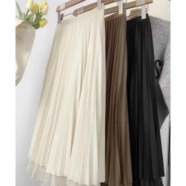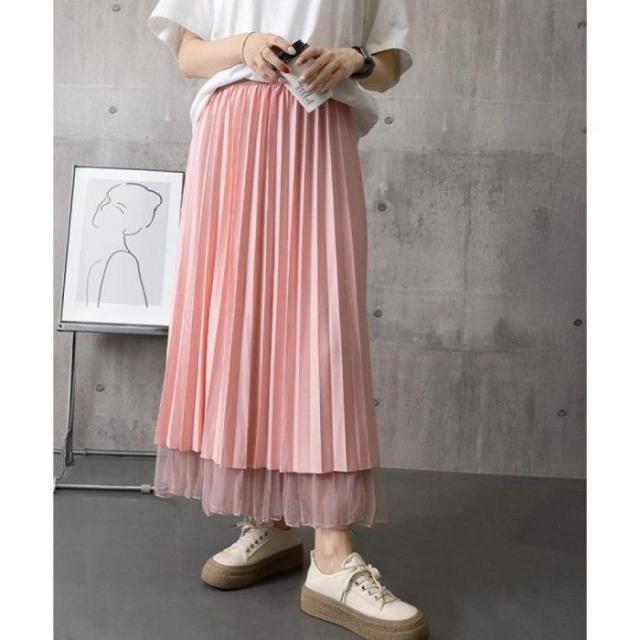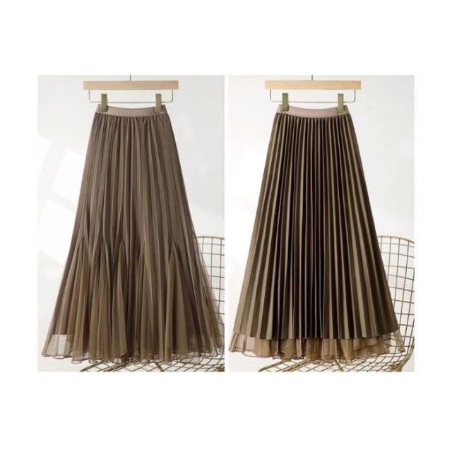 リバーシブルきれいめプリーツスカートおしゃれ ハイウエストロングスカート ウエストゴムフレアスカート ボリューム美脚脚長