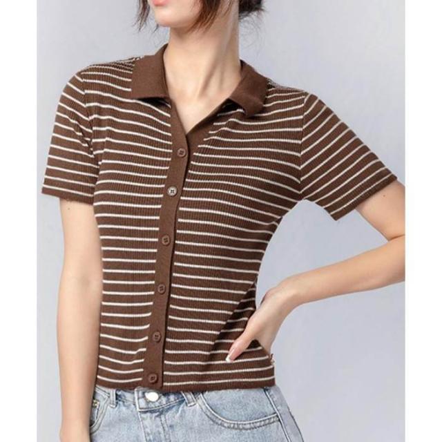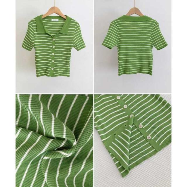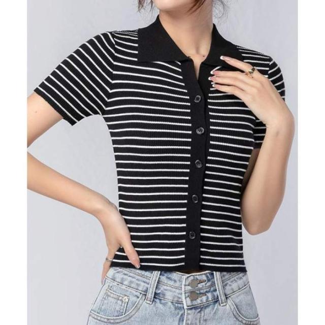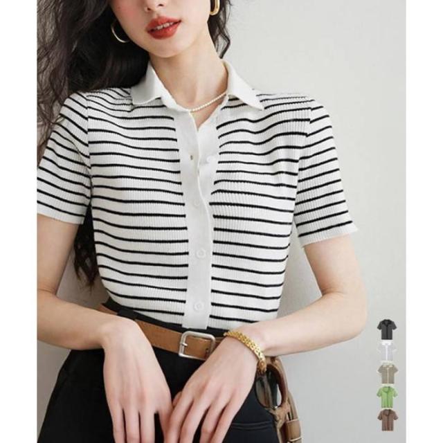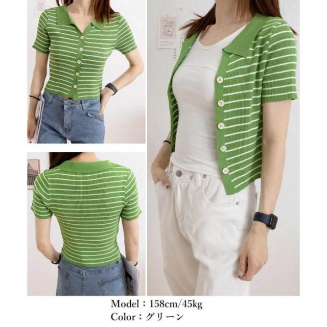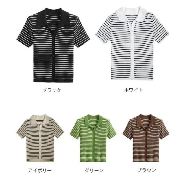 ボーダー柄ニットポロシャツレディース半袖