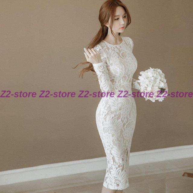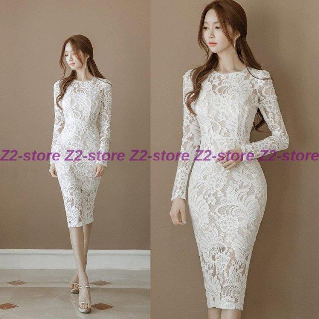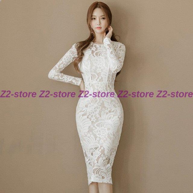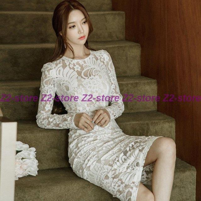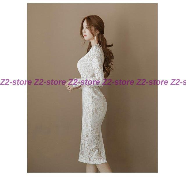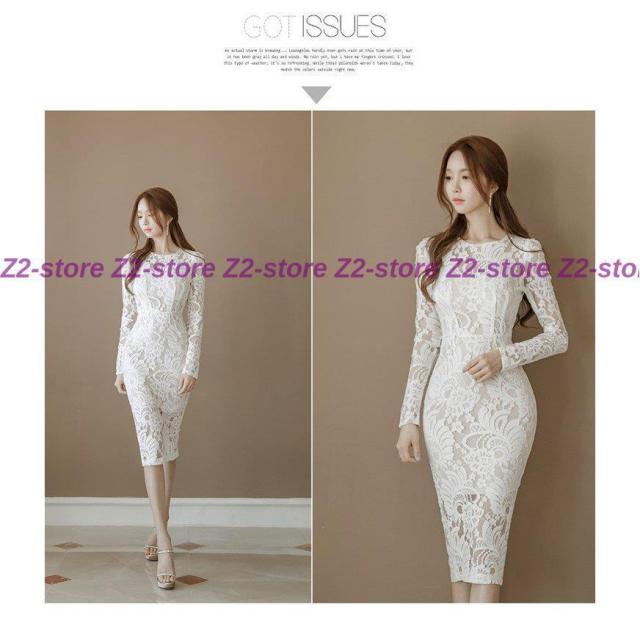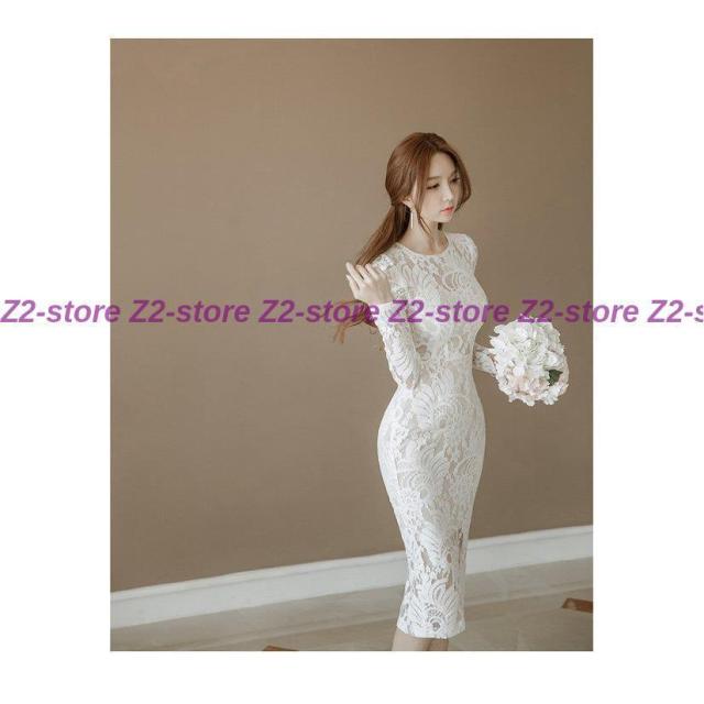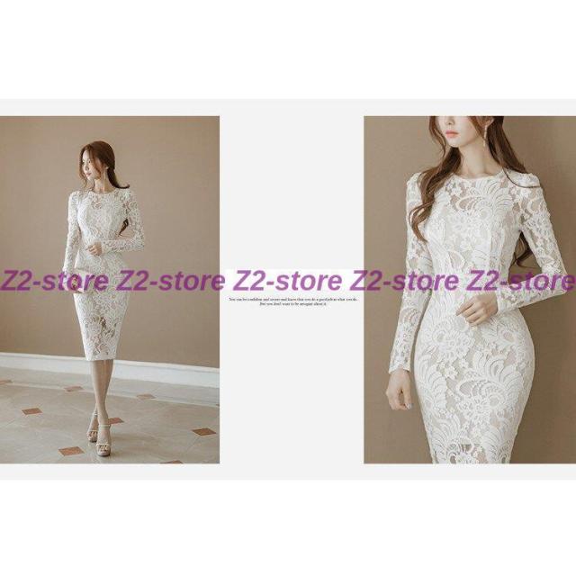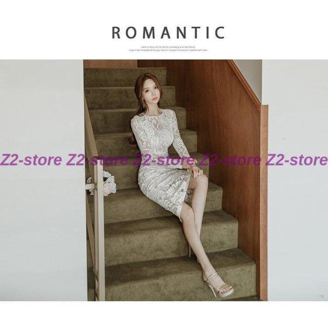 ワンピース レディース 膝丈ワンピース レースワンピース 長袖 丸首 花柄 Aライン ワンピース 腰括れ タイト エレガント 上品 演奏会