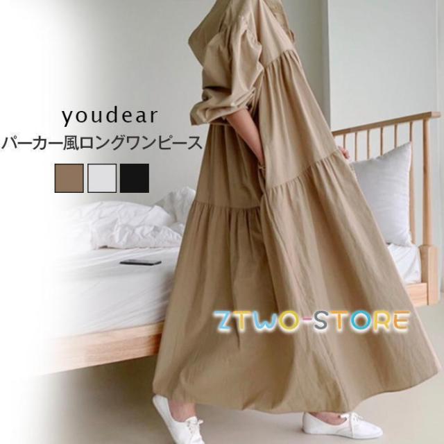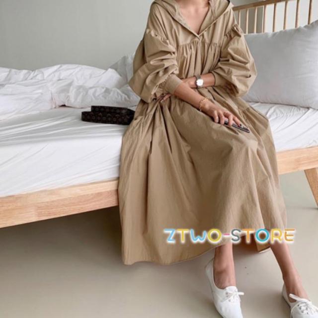 シャツワンピース マキシワンピース レディース フード付き パーカー 春 長袖 ゆったり ロングワンピース ロングシャツ 秋 夏 綿