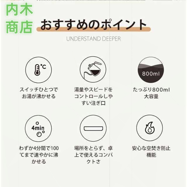800mL 大容量 自動電源オフ 304ステンレス