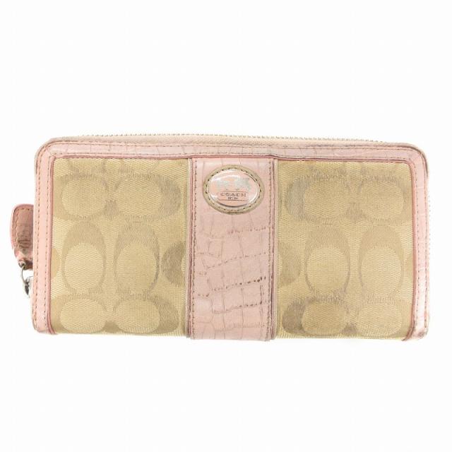 【中古】コーチ COACH シグネチャー 長財布 ウォレット ジャガード ピンク ベージュ /JS レディース