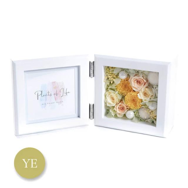 プリザーブドフラワーのボックスアレンジと、写真やカードをセットして飾れます。