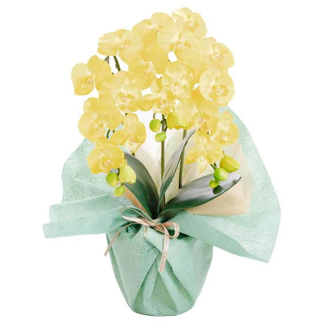 敬老の日 敬老祝 ギフト プレゼント アーティフィシャルフラワー ミニ胡蝶蘭3本立ち イエロー