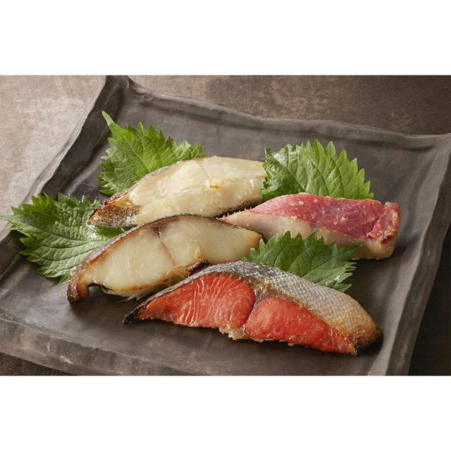 銀だら、紅鮭など5種類の魚を特製の味噌床と『氷温熟成』製法で素材の旨みを引き出した西京漬けのギフトセット。