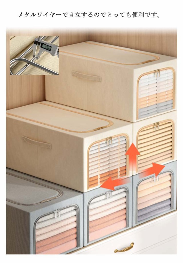 | 【商品名】衣類収納ケース 【サイズ】 31L(30*45*23cm) 49L(35*47*30cm) 56L(35*53*30cm) 【素材】綿麻、メタルワイヤー 【特徴】 水洗いOK! 高品質な綿麻素材を採用。 透明窓付き衣類収納ケースのご紹介です。 メタルワイヤーで自立するのでとっても便利です。 積み重ねて使用できるので、収納場所も無駄なく使うことができます。 上から、前から2方向取り出しも楽ちん♪ ダブルファスナー式ですので中身の出し入れが簡単です。 持ち手がついているので、持ち運びに便利。 使わないときはコンパクトに折りたためるので、わずかな隙間に収納可能。 北欧風はもちろん、和モダン、カフェ風、洋室、和室にも似合うオシャレな収納ボックス。 | |