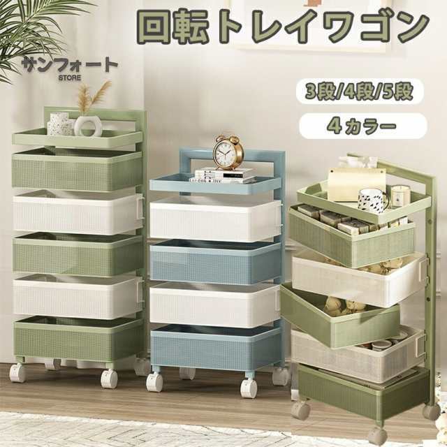 キッチンワゴン 回転 ワゴン サイドワゴン キャスター付き サイドテーブル 回転トレイワゴン 天板付き テーブル スリム キッチン収納棚