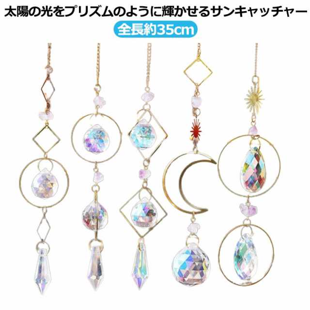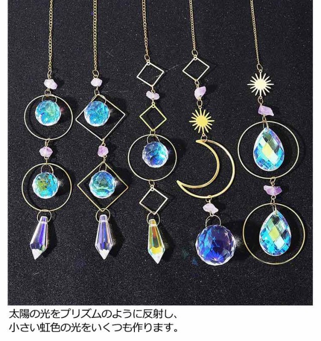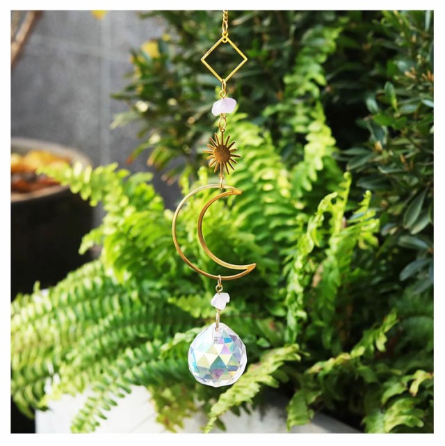 サンキャッチャー 多面的 水晶ボール パワーストーン クリスタルペンダント 星月 モチーフ 窓玄関 飾り キラキラ 開運 運気 幸運 恋愛 風水アップ 送料無料 車内装飾 手作 インテリア レインボー 太陽光 キラキラ パワーストーン