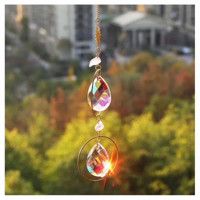 | 太陽の光をプリズムのように輝かせるサンキャッチャー。 いつも見慣れているお部屋も、光のシャワーが降り注ぐように輝きます♪♪ クリスタルガラスが太陽の光を受け、お部屋の中にたくさんの虹を運んでくれる、光のインテリアです。 太陽の光をプリズムのように反射し、小さい虹色の光をいくつも作ります。 お部屋のインテリアとして、吊るすだけの省スペースで手軽に飾れるので、あっというまにおしゃれに早変わり! | |