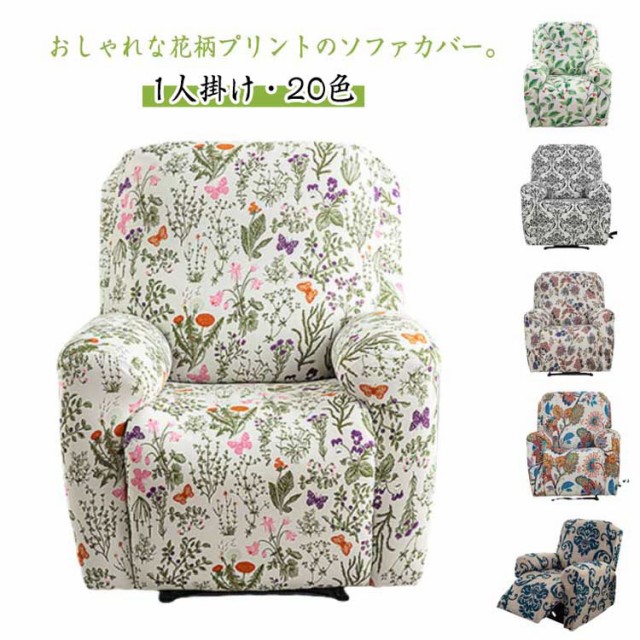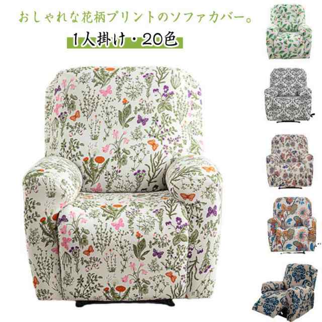 一人掛け 花柄 マッサージチェアカバー かわいい 総柄 ストレッチ ソファーカバー マッサージチェアカバー 電動ソファ カバー フィット 肘付き かけるだけ 爪とぎ防止 汚れ防止 水洗いOK ソファーカバー